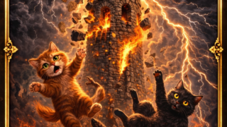 塔(ザ・タワー)のタロットカードの意味とは?正位置・逆位置をねこねこ星人が解説